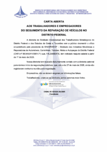 Carta aberta aos trabalhadores e empregadores – Reparação de veículos no Distrito Federal